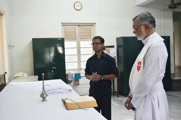 Today, in a private ceremony, Fr. Aniceto Pereira, Rector of St. Pius X College, vested Bro. Allen Gomes of the Archdiocese of Delhi with a Cassock. In this private but a very solemn ritual, the Rector blessed the Cassock and Bro. Allen. He offered prayers for his continual dedication and commitment on his journey towards the Priesthood.